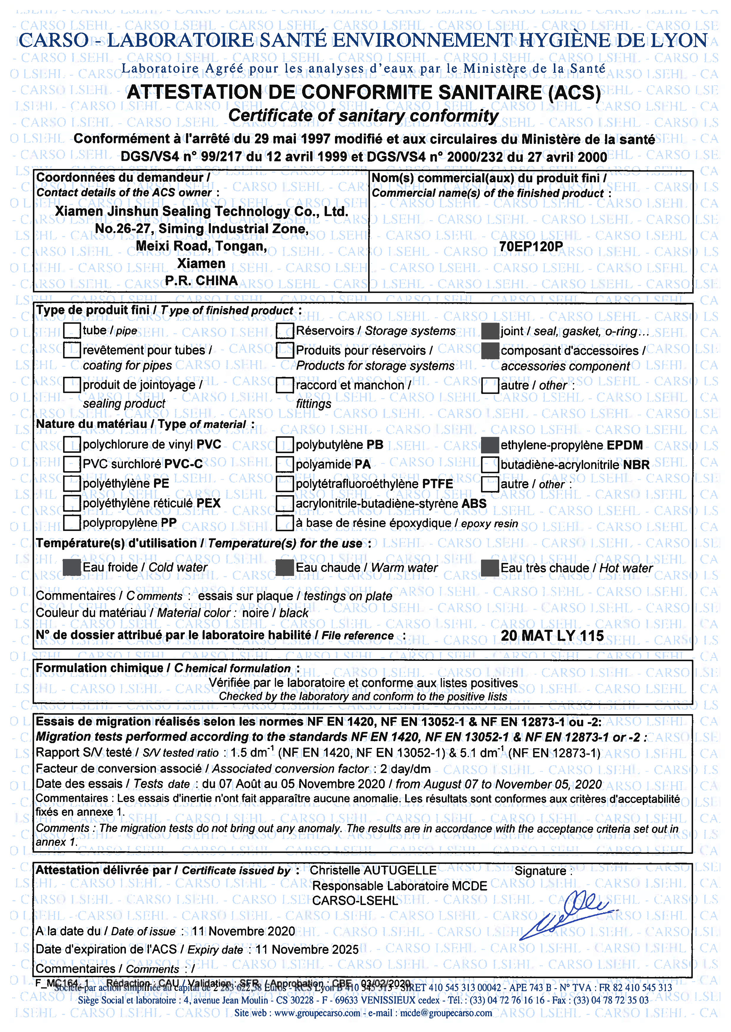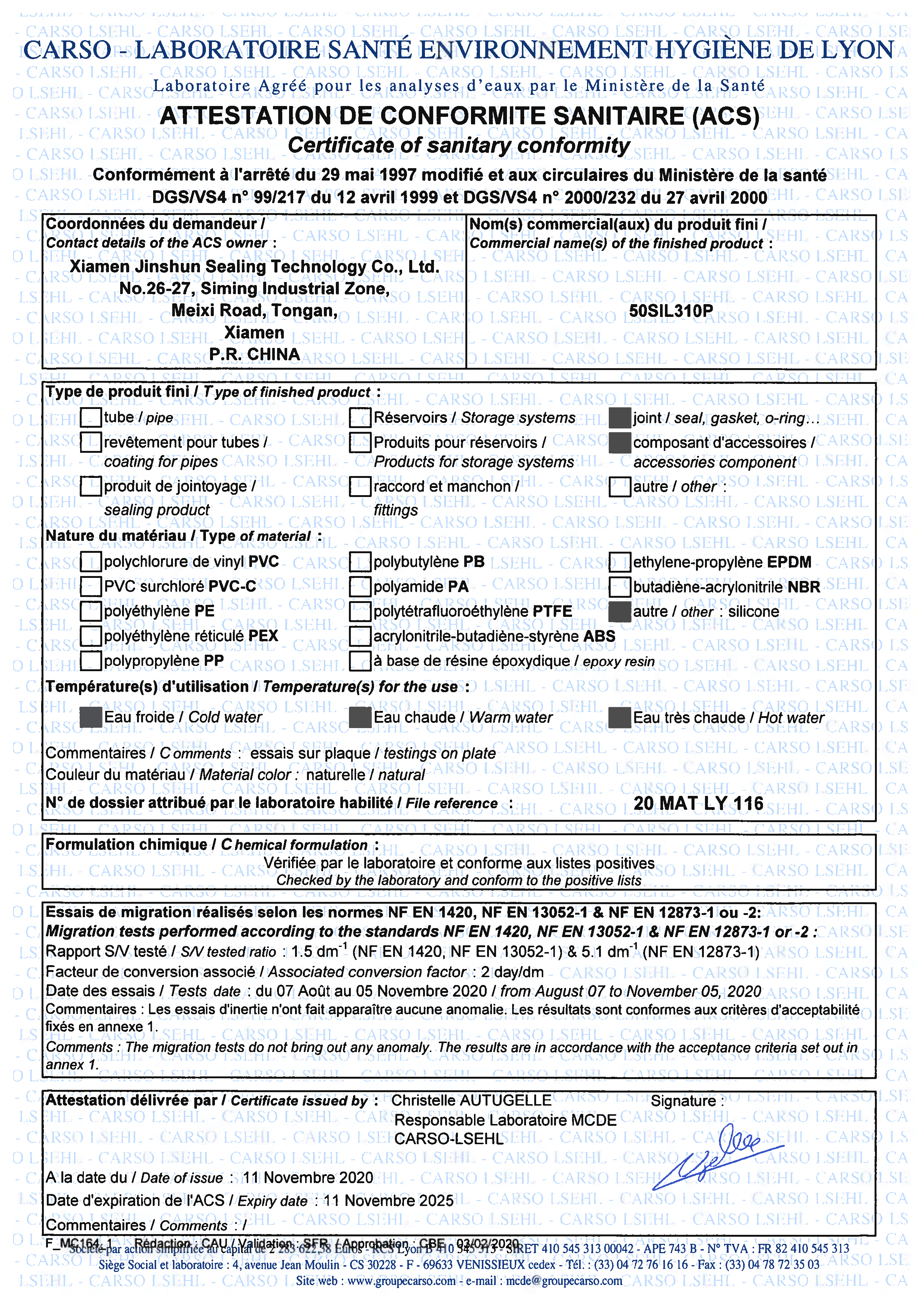 ACS-EPDM ACS-SILICONE ACS-NBR