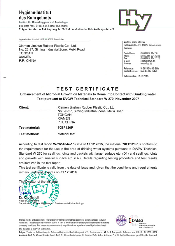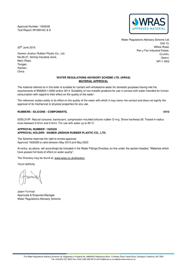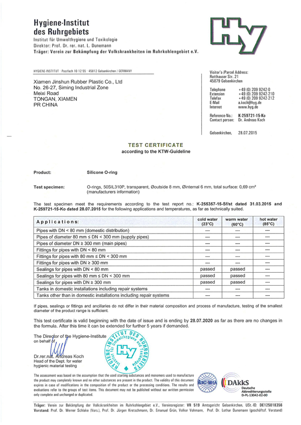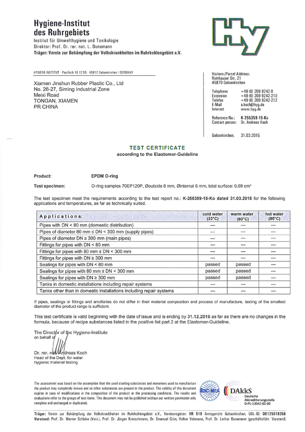 ACS-EPDM ACS-SILICONE KTW-EPDM WRAS-SILICONE